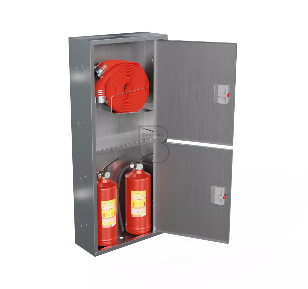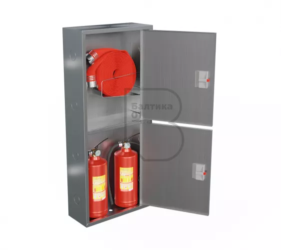 Дверцы пожарного шкафа открываются на 160 градусов. Имеют запорное устройство в виде пластиковой защелки.