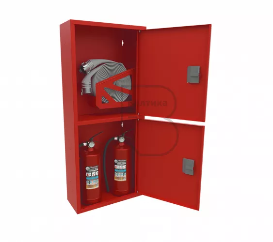 Шкаф пожарный ШПК-320 НЗК Премиум – предназначен для размещения и хранения рукава пожарного в сборе, пожарного вентиля (клапана) и двух огнетушителей до 8 литров. Шкаф оборудован кассетой (турелью) для пожарного рукава.